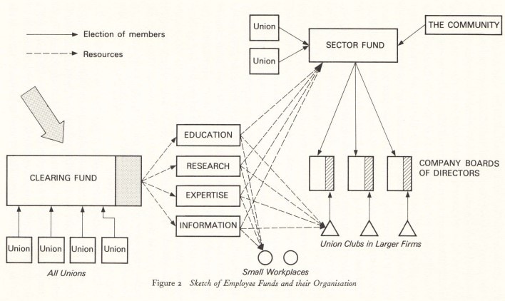 En détaillant l’organisation et l’administration des fonds, Meidner nous a donné la première mouture de ce qui devait être la base de la démocratie économique. La détention croissante d’actions par les fonds donne droit aux dividendes associées ainsi que le droit de nommer des membres du conseil d’administration dans chaque entreprise, selon la proportion d’actions détenues.